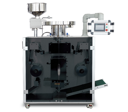 Meeting the reguirement of sealing for avoiding ight, and also it can be used in plastic-plastic heat sealing package, lt automatically completes the functions such as vibrating material feeding, broken piece filtering, counting, lengthways and transverse impressing, cutting margin scrap, batch number printing etc.